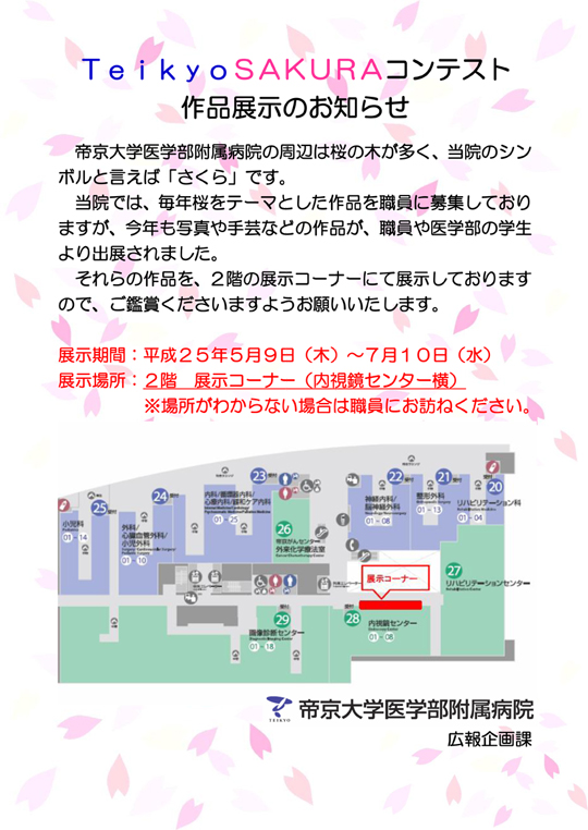 TeikyoSAKURAコンテスト作品展示のお知らせ 展示期間:平成25年5月9日(木)~7月10日(水)