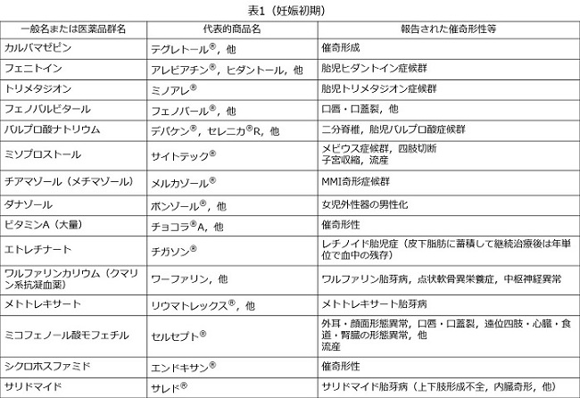 ご安心ください!多くの薬は胎児に影響を及ぼしません。例えば、市販の薬は、ほとんどが問題ありません(念のために購入時には薬剤師にご相談ください)。日本産科婦人科学会では「産婦人科診療ガイドライン2023」において下記の薬剤は胎児への影響があるため服用しないように推奨しています(表1、2、3)。