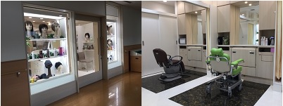 カット・パーマ・カラーなどの一般サロンメニューはもちろん、病室への出張や治療による脱毛時のご相談、医療用ウィッグのご試着も承ります。